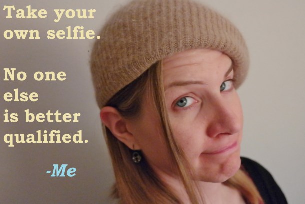 Selfie-filling Prophecy Posted on November 10, 2014 by Sarah E. Morin: sarahemorin.com Leave a comment Share this: Click to share on X (Opens in new window) X Click to share on Facebook (Opens in new window) Facebook Like Loading... Related